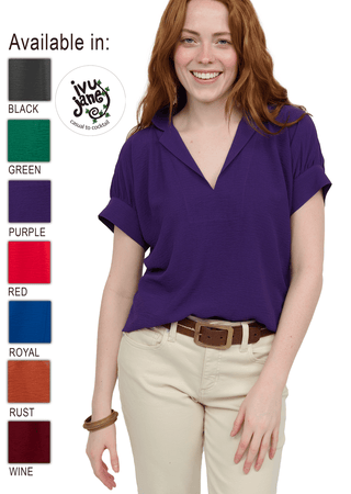 S/S Popover w/Collar and Cuff Top by Ivy Jane