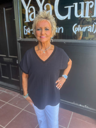 V-Neck Rib Trim Tee by Ivy Jane